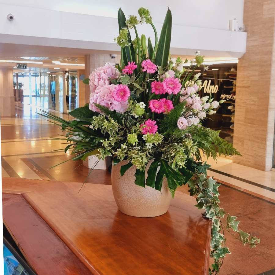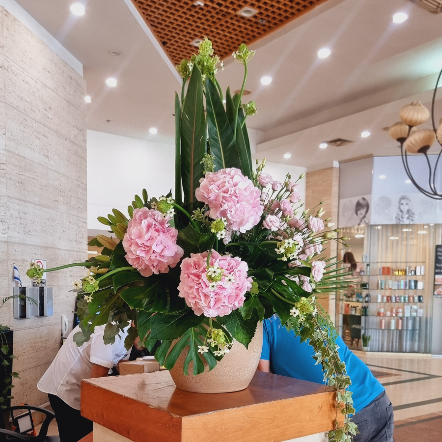 סידור פרחים ורוד יוקרתי ללובי משרדים