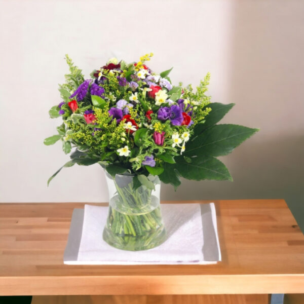 זר חורפי המכיל כלניות נרקיסים סולידגו ועדעד