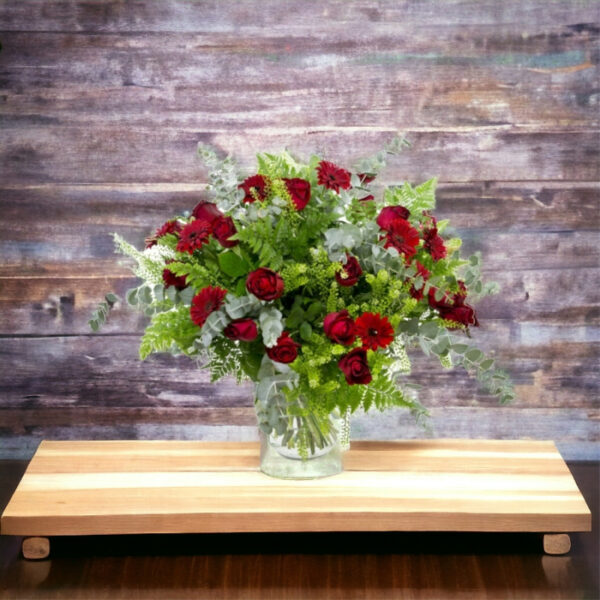 זר לכל אדום אהוב . זר המשלב ורדים אדומים