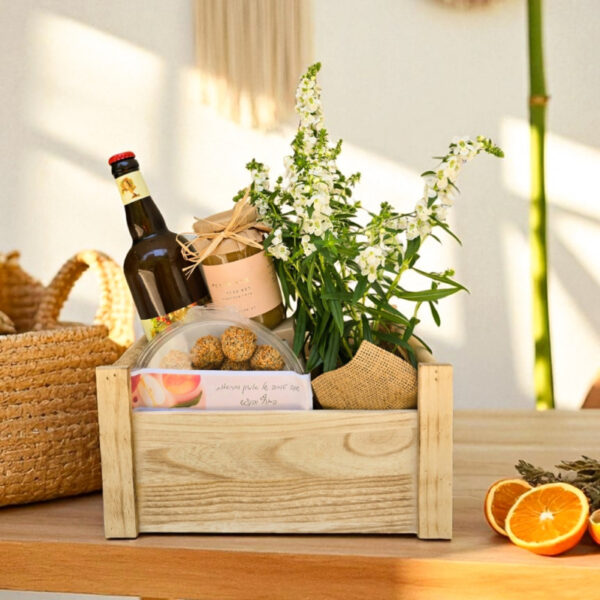 ארוז בקפידה ובאהבה בתוך ארגז עץ טבעי ומעוצב