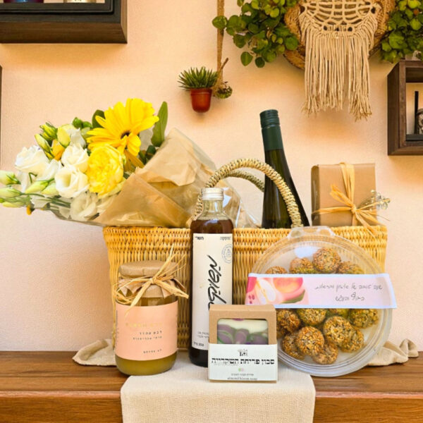 ארוז בקפידה ובאהבה בתוך סל קלוע בעבודת יד