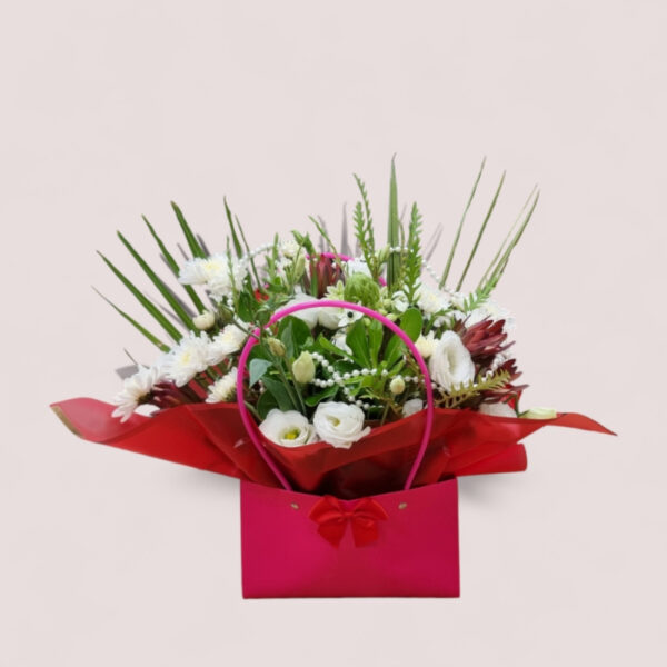 חוגגים את הרגעים המיוחדים עם סידור פרחים ייחודי בתוך תיק מעוצב! השילוב המושלם בין יופי פרחוני לפונקציונליות מודרנית – מתנה שמשאירה רושם שלא יישכח. הסידור כולל מגוון פרחים טריים שנבחרו בקפידה, המוצגים בצורה אלגנטית בתוך תיק אופנתי.