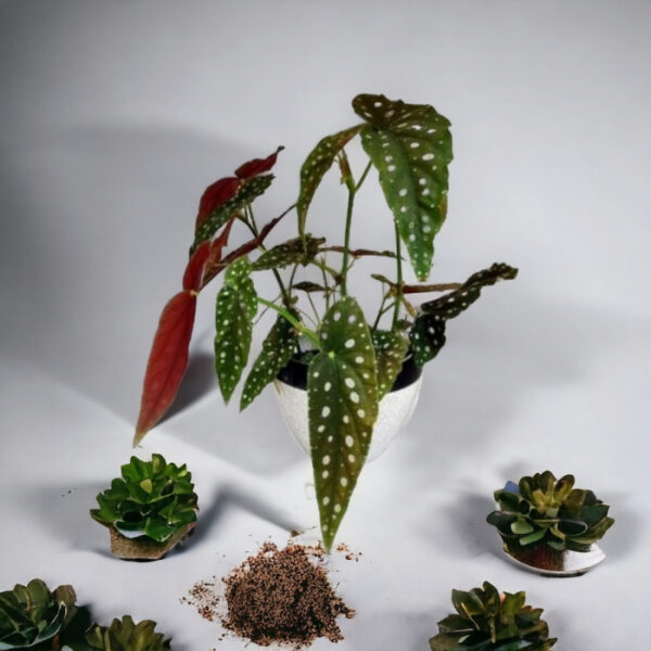הביגוניה שלנו חזקה מאוד ומתאימה לחובבי עציצים, בעלת עלים ירוקים עם נקודות סימטריות להפליא – ציור מהטבע – קסומה ומיוחד, כאלה שלא פוגשים בכל חנות או משתלה. היא ייחודית!